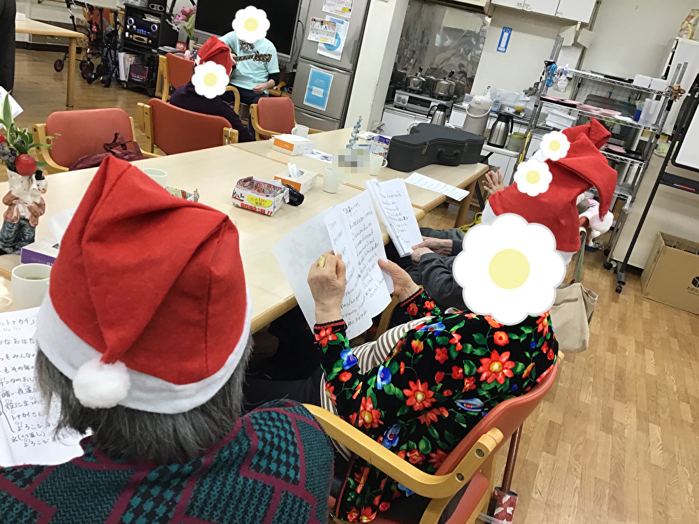 その後は、職員によるギター演奏に合わせて、クリスマスソングを楽しみました