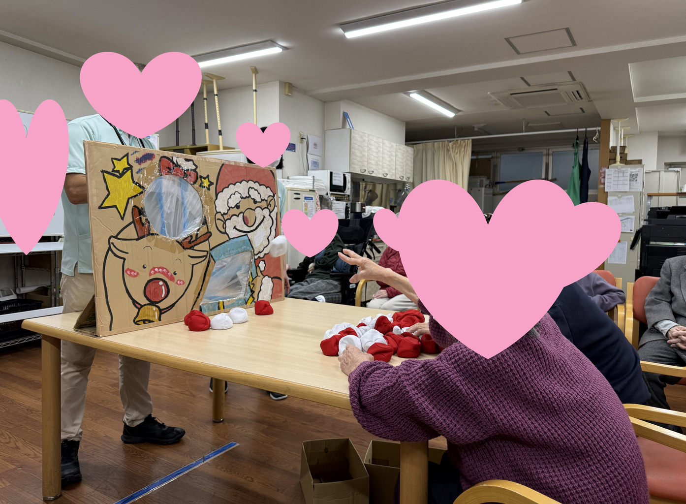 皆さんサンタやトナカイの持つプレゼントへ紅白球を入れる入れる😃!